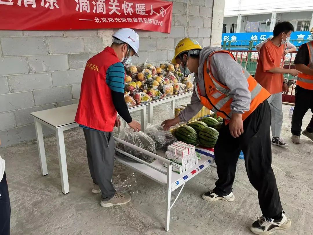 2022年6月3日,正值端午佳節(jié),北京亦莊橡樹灣精裝修項目部為了讓堅守在一線的施工作業(yè)人員感受到節(jié)日的溫暖,開展了“炎炎夏日送清涼,滴滴關懷暖人心”活動,為一線施工人員送去了“暖心粽”及水果、飲料、藿香正氣水等防暑降溫物品。節(jié)日問候的同時再次提醒員工注意生產安全,做好防暑降溫工作,有身體不適等情況要及時停止作業(yè),要注重勞逸結合,確保全體人員身體健康。